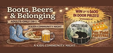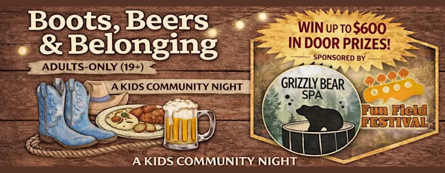 Boots, Beers & Belonging is designed to bring our community together for a relaxed evening of connection while supporting local children and families who may face financial barriers accessing developmental and behavioural services.